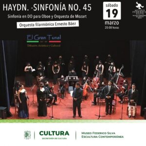 Por otra parte, la Orquesta Filarmónica “Ernesto Báez” se presentará en el Museo Federico Silva Escultura Contemporánea, el sábado 19 de marzo a las 20:00 horas, con entrada libre y uso de cubrebocas obligatorio.