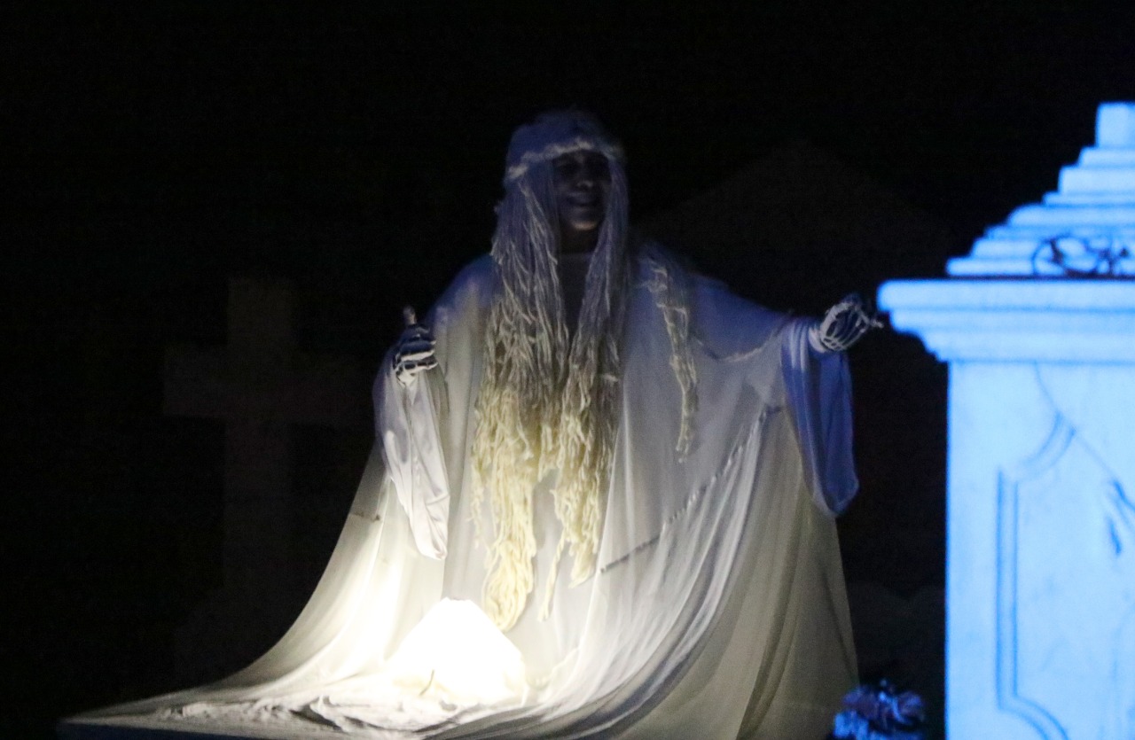 Los asistentes pudieron conocer arte funerario acompañado de iluminación escénica y personajes de leyenda como Gallo Maldonado, Dama Enlutada, Juan del Jarro y otros más.