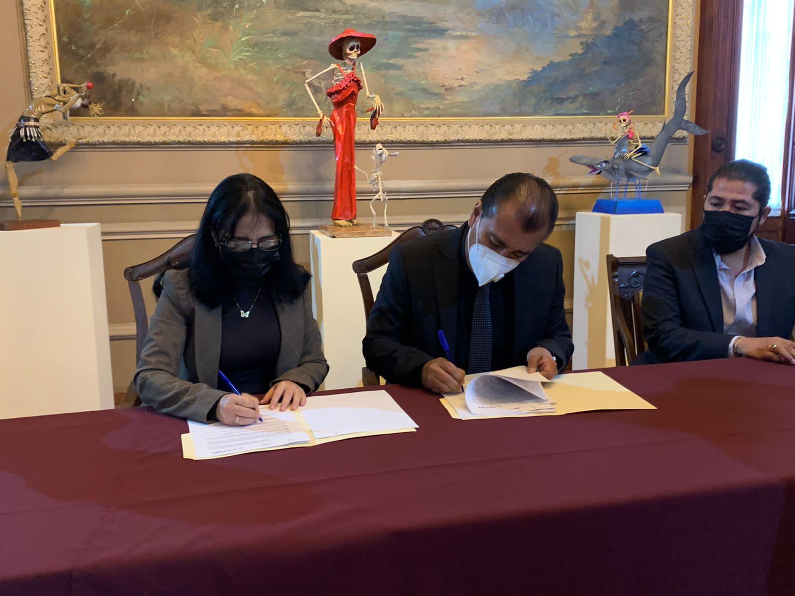 Con el objetivo de realizar acciones conjuntas en beneficio de la población de San Luis Potosí, acorde a la nueva política de inclusión y acceso a la cultura para todas y todos que implementa el Gobierno del Estado que encabeza José Ricardo Gallardo Cardona, la titular de la Secretaría de Cultura (Secult) Martha Elizabeth Torres Méndez y el director general del Sistema Educativo Estatal Regular (SEER) Juan Carlos Torres Cedillo, firmaron dos convenios de colaboración en las instalaciones del Museo Nacional de la Máscara.