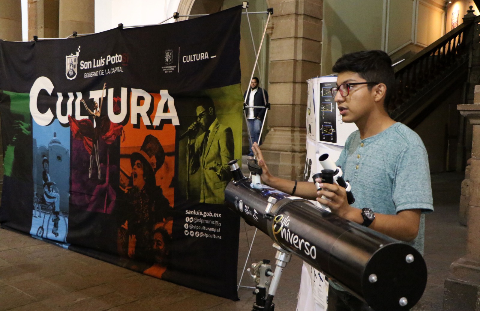 La Dirección de Cultura Municipal y la agrupación ChipOhm unificaron esfuerzos para realizar este evento de difusión y divulgación de la ciencia, en el que los asistentes pudieron tener cuatro actividades: Explicación de los distintos telescopios, taller de hologramas, videos científicos y la vista de los astros con tres telescopios montados en la azotea del Palacio Municipal.