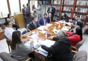 En la sesión de trabajo de la Comisión de Justicia del Congreso del Estado estuvieron presentes, la diputada Cinthia Verónica Segovia Colunga, presidenta; el diputado Juan Francisco Aguilar Hernández, vicepresidente; el diputado Edmundo Azael Torrescano Medina, secretario; y, los vocales, diputada Cecilia Senllace Ochoa Limón, diputado Rubén Guajardo Barrera, y la diputada Martha Patricia Aradillas Aradillas.