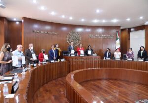 Además, las diputadas Bernarda Reyes Hernández, María Claudia Tistán Alvarado, Ma. Elena Ramírez Ramírez, y Emma Idalia Saldaña Guerrero; y los diputados José Luis Fernández Martínez, presidente de la Junta de Coordinación Política; Edmundo Torrescano Medina, René Oyarvide Ibarra, Alejandro Leal Tovías, y Cuauhtli Badillo Moreno.
