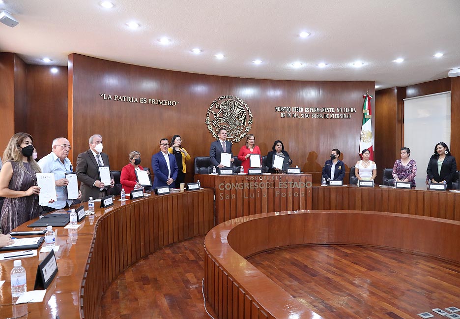 El Congreso del Estado llevó a cabo la Firma del Convenio de Colaboración para la Consulta a Personas con Discapacidad en materia reforma político electoral y educación inclusiva,  con los Poderes Ejecutivo y Judicial; así como la Universidad Autónoma de San Luis Potosí; el Sistema Estatal para el Desarrollo Integral de la Familia; la Comisión de Estatal de Derechos Humanos; el Tribunal Electoral del Estado; el Sistema Educativo Estatal Regular; y la Secretaría de Educación de Gobierno del Estado.