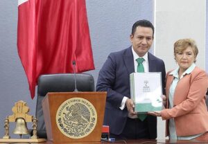 La presidenta de la Directiva, diputada Dolores Eliza García Román recibió el documento que se hará llegar a cada uno de las y los diputados de la LXIII Legislatura, para ser analizado y posteriormente dar lugar a la realización de las comparecencias de funcionarios estatales como parte de la Glosa.