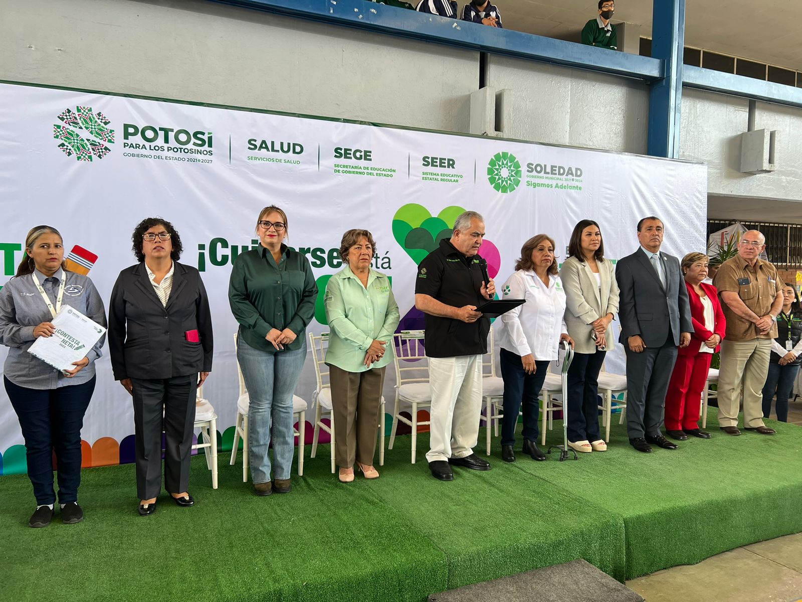 El evento de arranque de la encuesta se realizó en las instalaciones de la Escuela Secundaria Graciano Sánchez Romo, del municipio de Soledad de Graciano Sánchez, con la presencia de los titulares de la Secretarias de Salud, SEGE, SEER, DIF Estatal, y Secretaria de Cultura, entre otros.