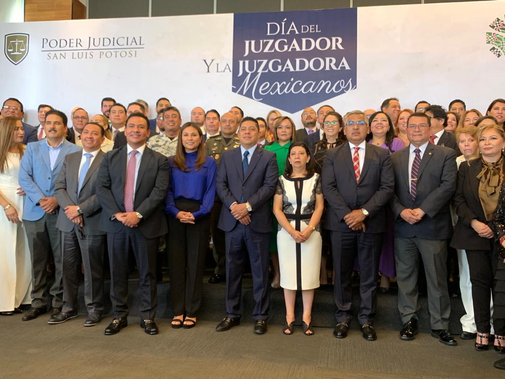 Acompañando a la Magistrada María Manuela García Cázares; el Gobernador del Estado, Ricardo Gallardo Cardona; el Fiscal General del Estado, José Luis Ruiz Contreras, la legisladora Segovia Colunga reconoció el trabajo que realizan las juzgadoras y los juzgadores potosinos, quienes tienen la responsabilidad de la impartición de justicia a los ciudadanos.