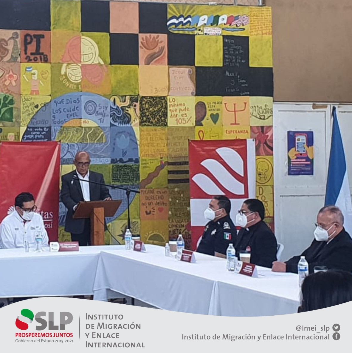 Con el objetivo de trabajar de manera coordinada en beneficio de las y los migrantes que transitan por San Luis Potosí, representantes de diversas dependencias estatales e instituciones, encabezados por el Secretario General de Gobierno, Alejandro Leal Tovías, se reunieron con el Pbro. Marco Antonio Luna Aguilar, Comisionado de la Pastoral Social de la Arquidiócesis y Director de Cáritas, informó Enrique Malacara Martínez, titular del Instituto de Migración y Enlace Internacional (IMEI).