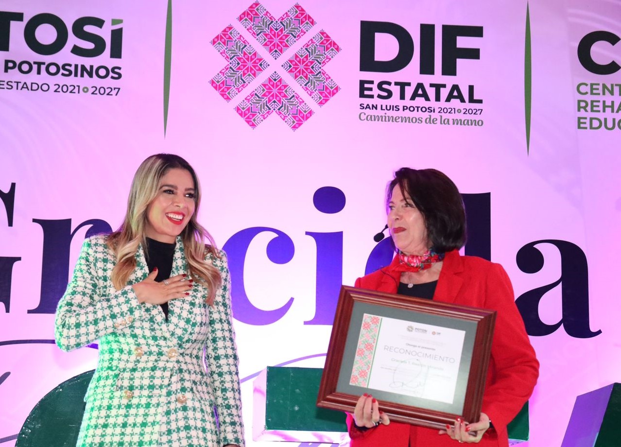 Al término de la conferencia, la titular del DIF Estatal entregó un reconocimiento a la ponente y dijo: “buscamos transformar vidas, promover la igualdad y el desarrollo integral de las personas con discapacidad en todos los municipios del Estado, siendo la inclusión y movilidad una prioridad para mejorar su bienestar y a su vez sus condiciones de vida”.