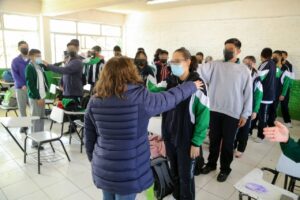 Para garantizar la seguridad social y mental de las y los alumnos, el DIF ofreció pláticas encaminadas a la prevención de riesgos psicosociales, espacios de diálogo y concientización que fueron dirigidos por parte de personal de la Coordinación de Bienestar Familiar, a cargo de Martha Zavala Tristán.