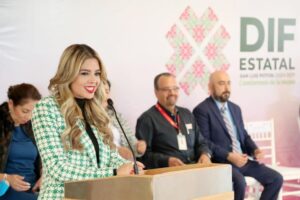 En su intervención, Ruth González, comentó los grandes resultados que se han obtenido a favor de las familias potosinas, mediante la colaboración que se mantiene con la compañía OXXO, “agradezco y valoro el gran compromiso y solidaridad de cadena comercial OXXO, que, al conjuntar esfuerzos con DIF Estatal, estamos ayudando a quienes requieren de un impulso en su entorno, su escuela y en su vida”, expresó la presidenta del DIF Estatal.