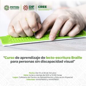 Con el objetivo de crear mayor conciencia en la población acerca de la importancia del uso del sistema Braille como medio de comunicación para el pleno respeto de los derechos humanos de personas con discapacidad visual, el Gobierno del cambio que preside el Mandatario Estatal Ricardo Gallardo Cardona, impulsa el “Curso de aprendizaje de lecto-escritura Braille para personas sin discapacidad visual”, a través del Sistema Estatal para el Desarrollo Integral de la Familia (DIF).
