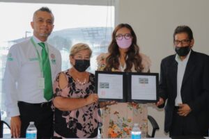 Participaron en la cancelación del timbre, Martín del Río Mora, gerente regional del Servicio Postal Mexicano; Yessica Guadalupe Méndez González, titular de la Procuraduría de Protección de Niñas, Niños y Adolescentes (PPNNA) y Julio César Martínez Vázquez, director de Asuntos Jurídicos y Derechos Humanos del DIF Estatal.