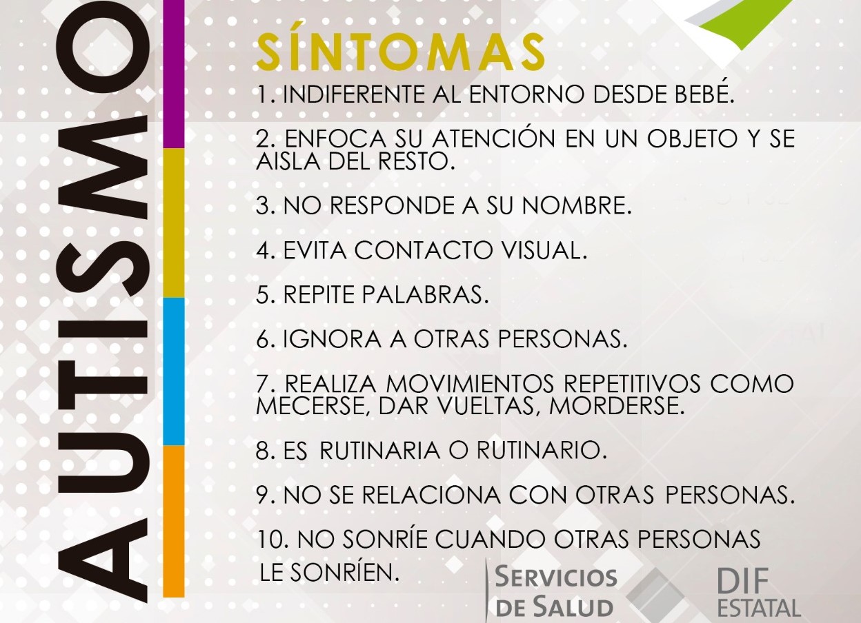 Este 2 de abril en el que se conmemora el Día Mundial de la Concienciación sobre el Autismo, el DIF Estatal emite algunas recomendaciones para contribuir al tratamiento y la inclusión de las personas que están diagnosticadas con TEA, tales como: identificar qué cosas les causan estrés, ansiedad o felicidad; aprender qué causa sus problemas de conducta y qué los previene; entender qué pueden dificultades al enfrentarse a nuevas situaciones; programar horarios para comer, jugar, aprender y dormir; involucrarles en la vida diaria y darles tareas sencillas.