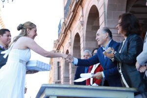 «Tan solo el año pasado, más de 180 parejas legalizaron su unión mediante la ceremonia civil, lo cual nos da mucho gusto, porque de esa manera protegemos el núcleo familiar, y se da mayor certeza jurídica a la pareja y en el caso de quienes tienen hijos, están más protegidos», explicó la Presidenta del organismo, Estela Arriaga Márquez.