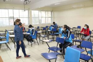 Por último, el secretario de Educación Ernesto Jesús Barajas Ábrego pidió a las madres y padres de familia coadyuven para que se fortalezcan los protocolos establecidos desde el inicio del ciclo escolar para un regreso seguro a clases, y no bajar la guardia ante la temporada invernal donde se registran otras enfermedades respiratorias, priorizando el uso permanente de cubreboca, gel antibacterial y mantener sana distancia.