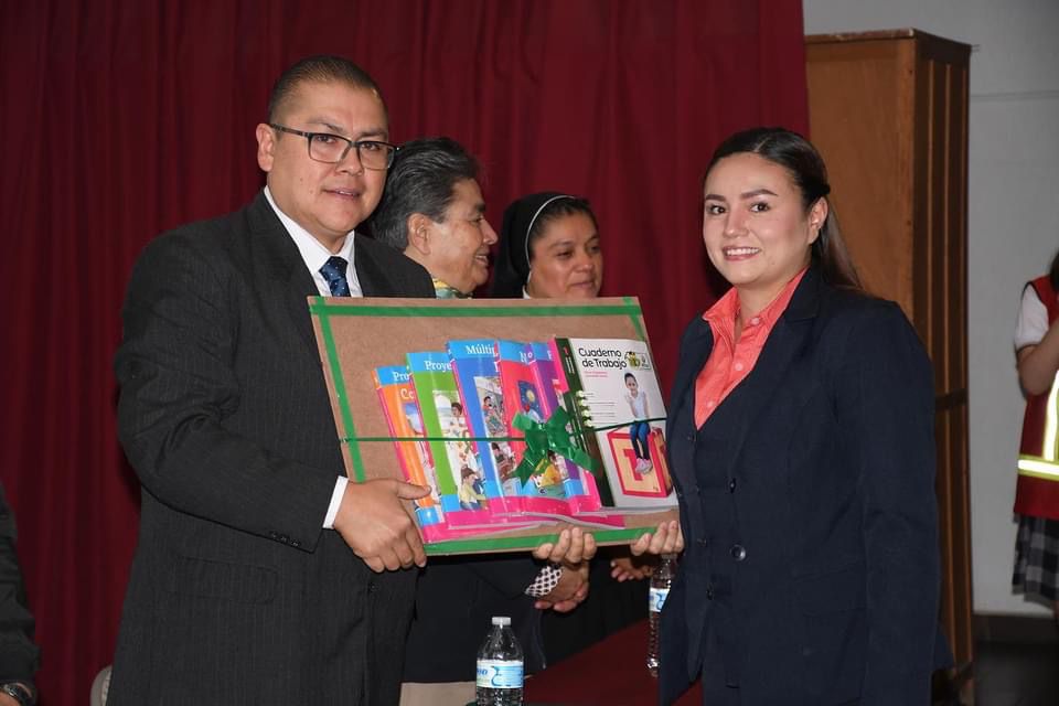 Mencionó que, estos paquetes de libros que se entregaron son materiales que servirán para que las y los futuros docentes, cuando ya estén en su práctica docente, elaboren sus planes de trabajo alineados al modelo educativo de la Nueva Escuela Mexicana, «contribuyendo a la educación de excelencia de las niñas, niños y adolescentes».