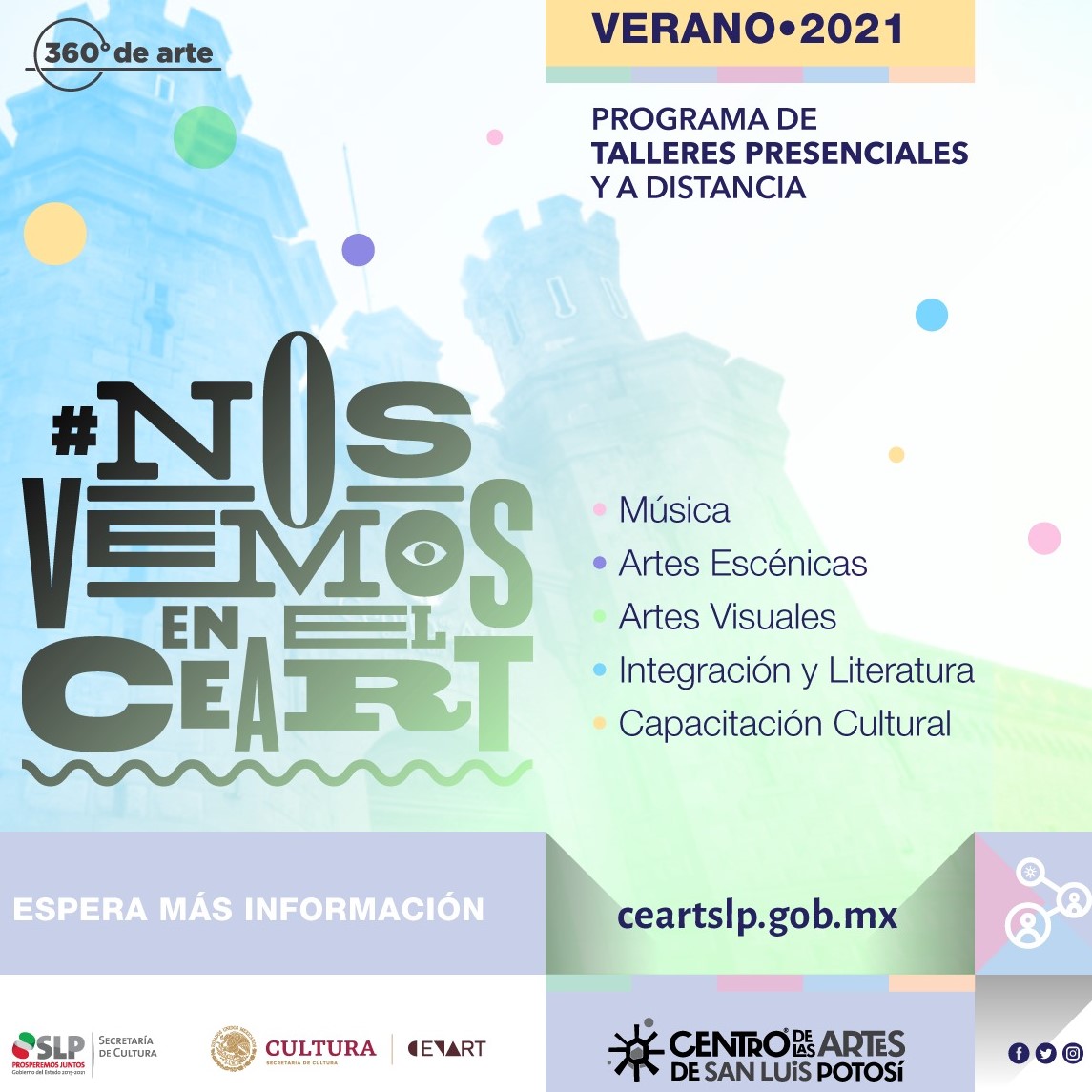 El Centro de las Artes de San Luis Potosí (CEART) dio a conocer que a partir del próximo 28 de junio dará inicio el proceso de inscripción a los talleres de verano que se ofrecerán en modalidad presencial y a distancia en las disciplinas de artes escénicas, artes visuales, música, capacitación cultural, integración y literatura, de la mano de docentes con amplia experiencia en cada una de ellas.