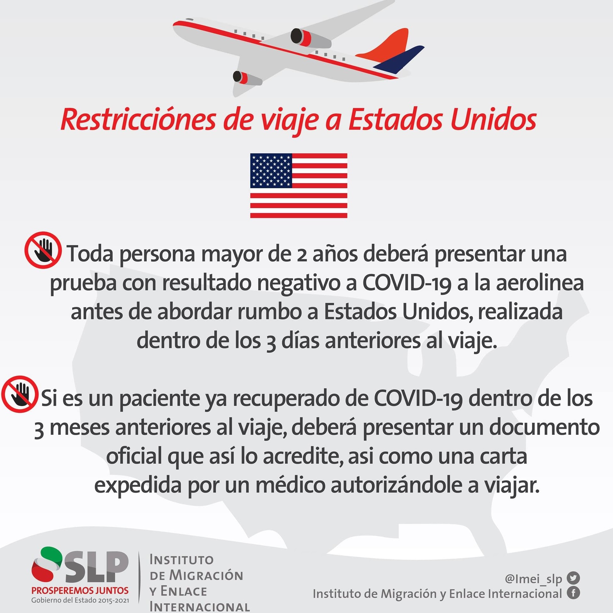 Malacara Martínez recordó que así como Estados Unidos, algunos países solicitan a los viajeros pruebas negativas a COVID-19 con un periodo máximo de aplicación de tres días anteriores al viaje y mantener un periodo de aislamiento o cuarentena, sin embargo las medidas de restricción para ingresar cambian de un país a otro por lo que pidió tomar en cuenta las limitantes a las que se podrían enfrentar nuestros connacionales en el extranjero en caso de requerir atención médica pues la situación hospitalaria es delicada en todos lados.