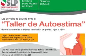 La directora general del Instituto de las Mujeres del Estado (IMES), Erika Velázquez Gutiérrez, informó que a través del área de Atención Ciudadana y los Servicios de Salud, se ofrecerá de manera presencial el “Taller de Autoestima”, cumpliendo con todas las medidas establecidas por las autoridades sanitarias a nivel federal y estatal.