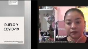 A través de su Centro de Atención Integral del municipio de Soledad de Graciano Sánchez, el Instituto de las Mujeres del Estado (IMES), ofreció la conferencia en línea “Duelo y COVID-19”, al alumnado del Colegio de Estudios Científicos y Tecnológicos (CECYTE) plantel uno, y a personal de la Dirección General de Prevención y Reinserción Social.
