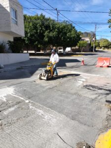 También en la calle Montes Kelut, entre Cordillera Arakan y Sierra Leona, se realizan trabajos para la colocación de material de concreto; por lo que está en proceso la rehabilitación de la superficie de manera inicial con la apertura de caja, corte del concreto dañado y la preparación para verter el material.