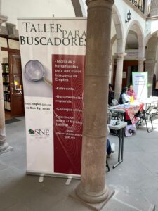 Estas sesiones de capacitación se llevan a cabo dentro del marco de jornadas de reclutamiento, donde se ofrecen oportunidades de empleo a los ciudadanos potosinos. Dichas actividades tienen lugar en el patio central de la dependencia.