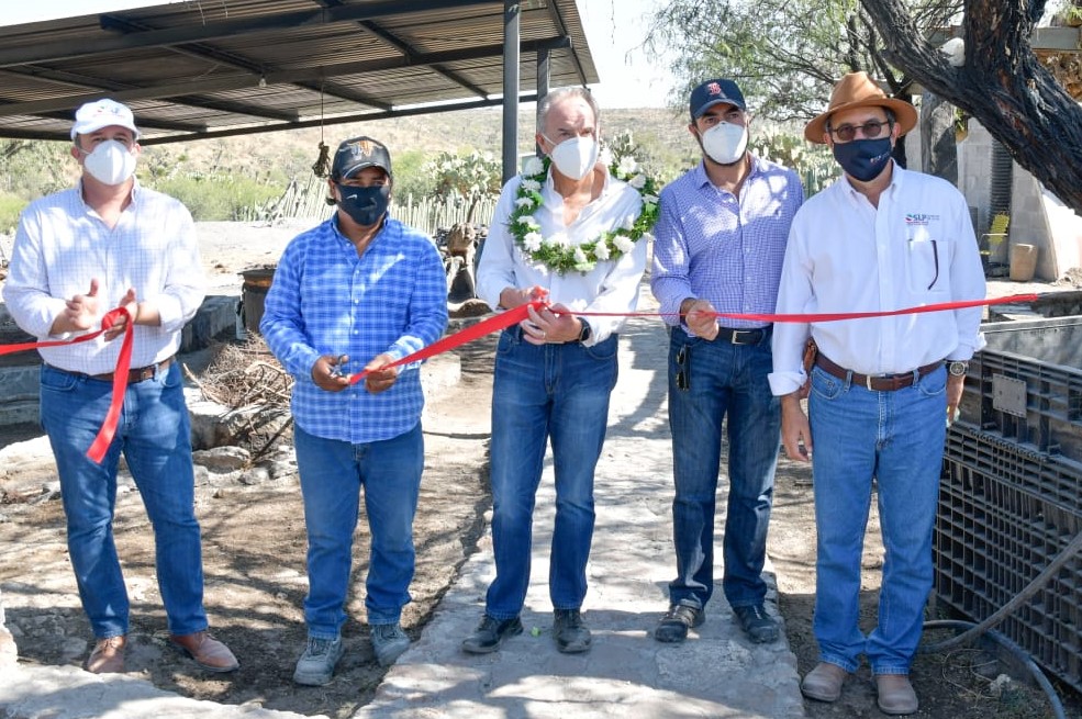 Mexquitic de Carmona, S.L.P.- Como parte de una estrategia integral a favor del desarrollo de la región Centro, el Gobernador del Estado, Juan Manuel Carreras López, inauguró los trabajos de rehabilitación de infraestructura de las fábricas de la Sociedad de Producción Rural “Mezcal de Campanilla Los Navarro”, cuya técnica de elaboración artesanal fue declarada Patrimonio Cultural del Estado, en un esfuerzo por fortalecer esta actividad que se ha convertido en una importante fuente de ingreso para los pobladores e impulsar la reactivación económica.