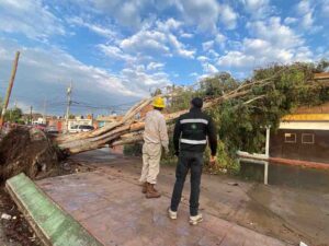 El director general de la dependencia estatal, Mauricio Ordaz Flores, informó que por instrucciones del Gobernador de San Luis Potosí Ricardo Gallardo Cardona, se implementó un operativo, donde se atendieron 13 árboles caídos, uno de ellos sobre una vivienda, otro más sobre un vehículo, además de que se tuvo la caída de cinco postes de luz en diferentes colonias, que provocó corte de energía eléctrica. En coordinación con la Comisión Federal de Electricidad (CFE), se retiraron y se estableció el suministro eléctrico.