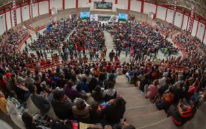 “¡Gracias por nuestros útiles escolares, pollo!”, exclamó un grupo de niños en el auditorio Miguel Barragán al tomarse una foto grupal con Gallardo Cardona. Al respecto, beneficiarias destacaron que este programa les da un respiro en el tema de la economía familiar.