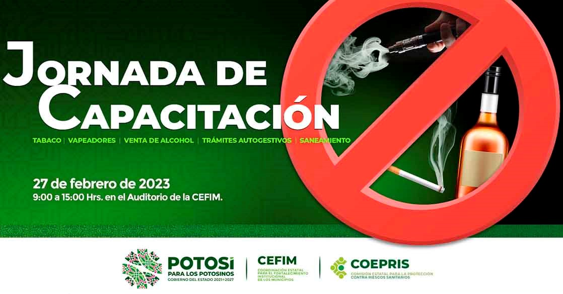 Tras las reformas a la Ley General para el Control del Tabaco, que prohíben fumar en espacios públicos, exigen a supermercados y tiendas de conveniencia retirar de la vista las cajetillas, aunado a la prohibición de vapeadores en todas sus presentaciones, la Coordinación Estatal para el Fortalecimiento Institucional de los Municipios (CEFIM), llevará a cabo una jornada de capacitación encabezada por organismos estatales, atendiendo el compromiso del Gobernador de San Luis Potosí, Ricardo Gallardo Cardona a favor de prevención y de la salud de las y los potosinos.