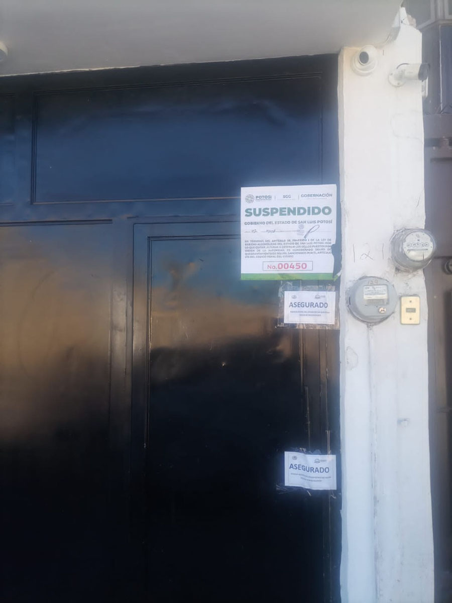 En atención a la instrucción del Gobernador de San Luis Potosí, Ricardo Gallardo Cardona, de contribuir de forma interinstitucional con autoridades de seguridad en la entidad a fin de brindar espacios seguros para las y los potosinos, la Dirección General de Gobernación clausuró esta semana dos lugares por diversas irregularidades.