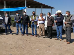 Una comitiva de personal de la dependencia, especialistas y autoridades municipales valoraron las condiciones de las huertas afectadas, en los municipios de Rioverde y Ciudad Fernández.