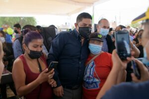 Este martes, la calle de Gómez Farías en la colonia La Libertad de México se llenó de cientos de personas que recibieron con gran entusiasmo al Gobernador Ricardo Gallardo Cardona, quien pondría la primera piedra de lo que será la unidad deportiva de esa colonia.