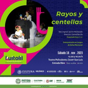 Detalló que, este 13 noviembre en el Teatro Polivalente, a las 12:00 y 17:00 horas, se presentará “Instrucciones para sembrar un jardín” procedente de la Ciudad de México; el 15 noviembre en el Teatro de la Paz, a las 12:00 y 17:00 horas, se presenta MINIVER: Los tres super Estados, también de la Ciudad de México, entre otros. Dijo que toda la programación se puede consultar en redes sociales de la Secretaría de Cultura de San Luis Potosí y del Centro de las Artes de San Luis Potosí.