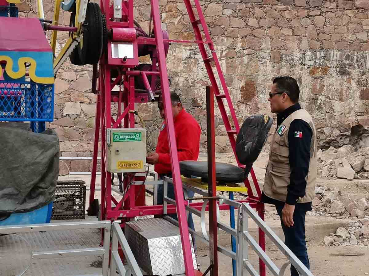 El director General de la dependencia, Mauricio Ordaz Flores informó que se supervisan las instalaciones eléctricas, el armado de las estructuras y juegos, además de que se les requiere una bitácora de mantenimiento, seguro de responsabilidad civil, memoria de cálculo y dictamen estructural.