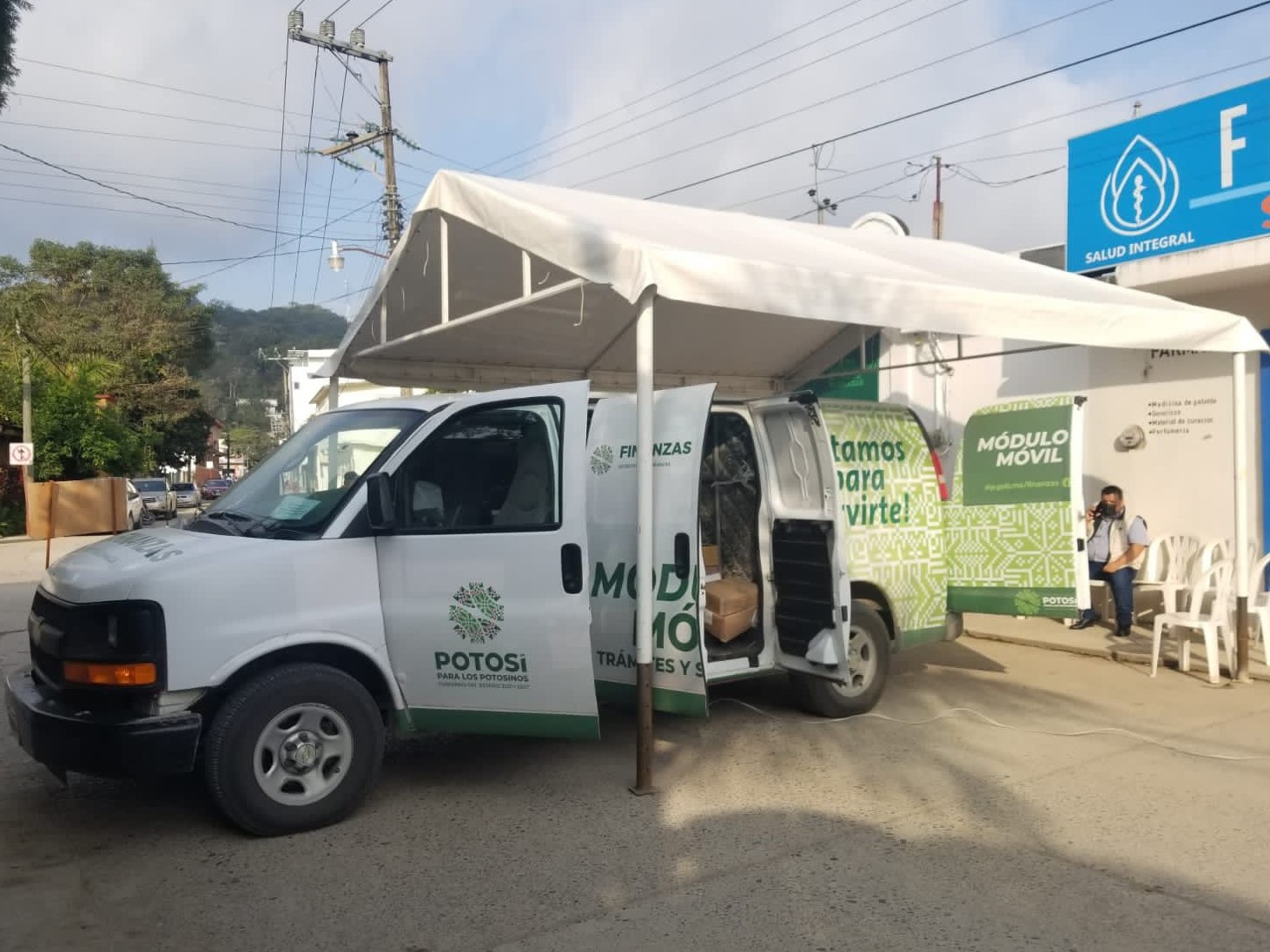 En Axtla de Terrazas, la unidad móvil está ubicada en calle 5 de mayo, Barrio San Miguel; en San Vicente Tancuayalab, en la calle Hidalgo #60, zona Centro; mientras que en Villa de Ramos el módulo se ubica en calle Francisco I. Madero #17, zona Centro. Para acudir a los módulos y continuar aplicando medidas sanitarias para el cuidado de la salud de las y los contribuyentes, se programar cita previa en la página www.slpfinanzas.gob.mx/citas.