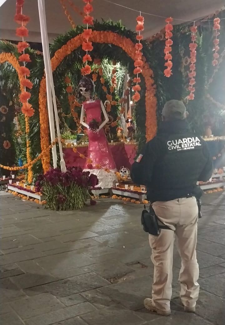 En el marco de las actividades que promueven las autoridades con motivo del Xantolo y Día de Muertos y como parte de los dispositivos enmarcados en esta temporada, las y los oficiales de la Guardia Civil Estatal mantienen vigilancia estacionaria y a pie tierra en las principales calles del Centro Histórico.