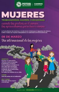 En seguimiento al trabajo del Gobernador de San Luis Potosí, Ricardo Gallardo Cardona, en materia de transversalización de la perspectiva de género, en el marco del Día Internacional de las Mujeres, que se conmemora este 8 de marzo, la Junta Estatal de Caminos (JEC), realizará diversas actividades para la concientización sobre la importancia del trabajo de las potosinas, como un pilar para su empoderamiento y autonomía y cómo transforma vidas.