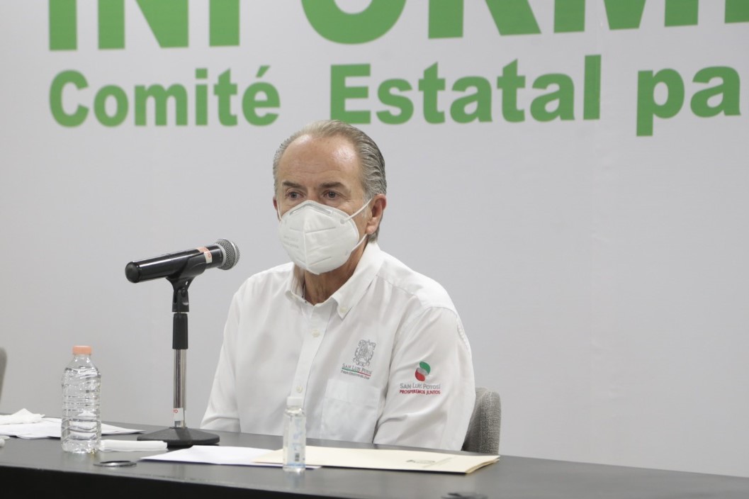 El titular de la Secretaría de Salud, Miguel Ángel Lutzow Steiner, indicó que la entidad se encuentra en 32 puntos conforme a la determinación de las autoridades federales, lo que la coloca en rojo de máximo riesgo de contagio, por lo que se determinan acciones conjuntas para salvaguardar la salud de las y los potosinos.