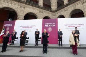 En su mensaje, el Presidente de México, reconoció que este nuevo organismo permite poner en marcha la reforma laboral aprobada en el 2019, y que responde a los principios democráticos y de justicia social, en la que se busca el acuerdo y diálogo.