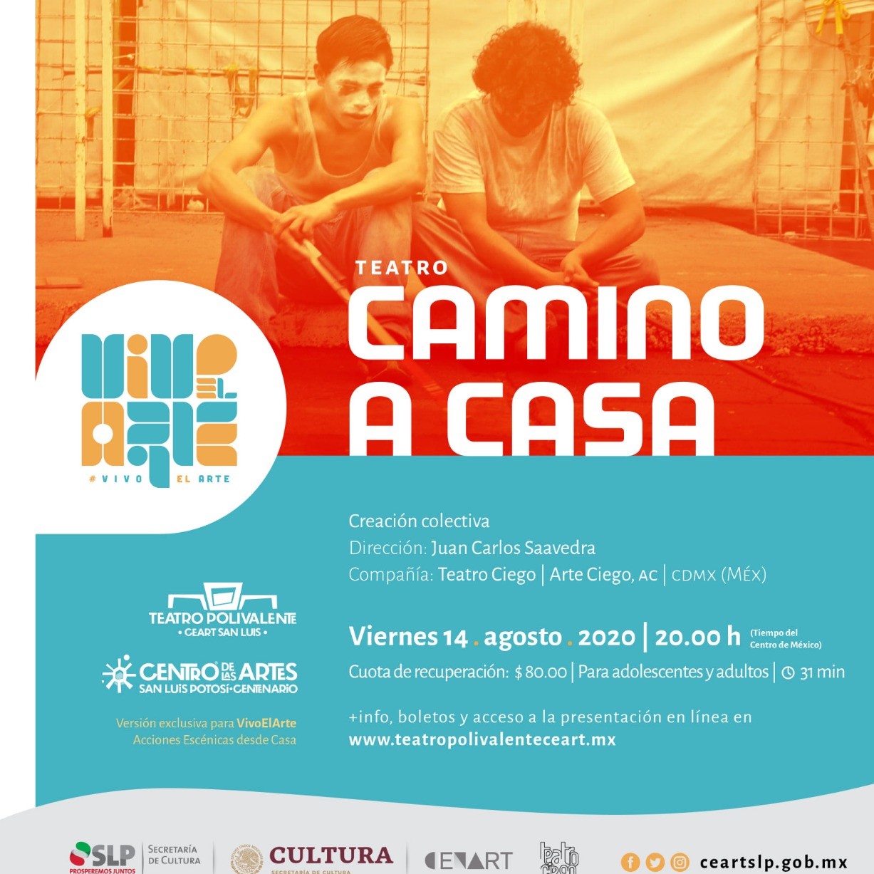Como parte de la programación virtual de la Secretaría de Cultura (SECULT), el Teatro Polivalente del Centro de las Artes de San Luis Potosí, invita a la presentación de la obra “Camino a casa” creación colectiva de la compañía Teatro Ciego | Arte Ciego A.C., (CdMx), con la dirección de Juan Carlos Saavedra, que se transmitirá este viernes 14 de agosto en punto de las 20:00 horas a través de la plataforma www.teatropolivalenteceart.mx.
