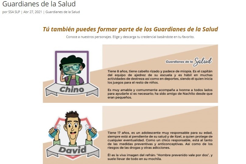 Junto con Chino, David, Ema, Itzel, Ivonne, Liz, Nachito y Tucho, los 8 “Guardianes de la Salud”, las y los jóvenes pueden conocer en la página de slpcoronavirus.mx las medidas sanitarias, y descargar el formato de la credencial que los acredita como Guardianes de la Salud.