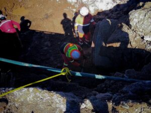 “La maquinaria llegó al sitio alrededor de las cinco de la tarde, excavadoras y retroexcavadoras comenzaron a desmontar la tubería dañada, los trabajos continuaron durante la noche; ahora informan que ya iniciaron las labores de soldadura en tubos y estamos en espera de que realicen el acoplamiento”, dijo.