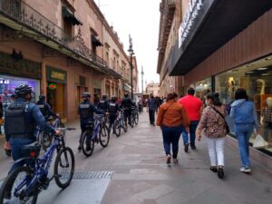 SLP.- Bajo la premisa de ser un gobierno cercano a la ciudadanía y de mejorar las condiciones de seguridad en espacios públicos de la capital potosina, la Dirección General de Seguridad Pública Municipal (DGSPM) a través de la Dirección de Fuerzas Municipales activó este día al agrupamiento «Pantera», integrado por agentes municipales que a bordo de bicicletas recorrerán mercados y andadores comerciales de la zona centro para atender la demanda de mayor presencia policial en este sector.
