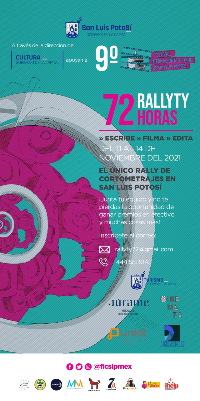 Habrá un Rallyty de 72 horas del 11 al 14 de noviembre, a cargo de Carlos Rodiza Coordinador General del Festival, en el que los participantes escribirán, producirán y grabarán un cortometraje en 72 hrs.