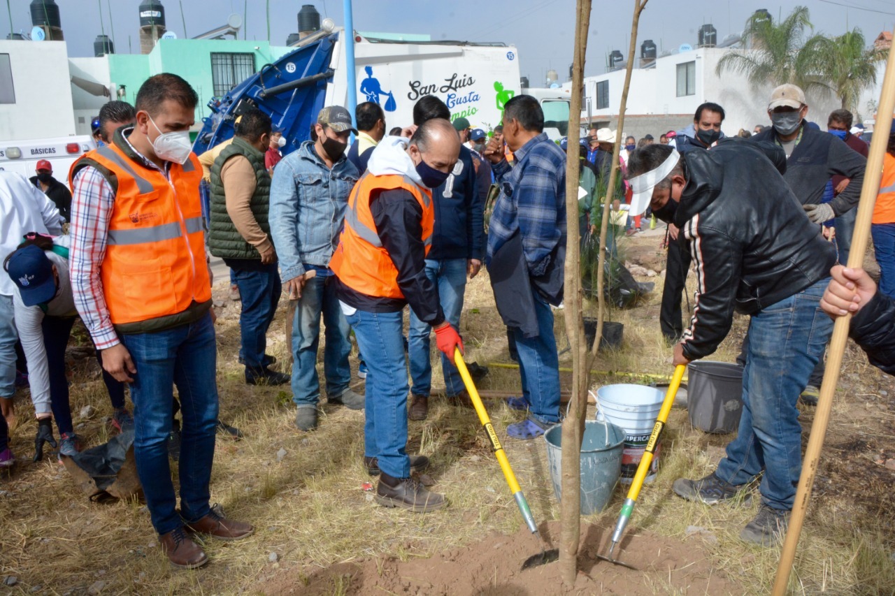SLP.- En la quinta edición de “Domingo de Pilas con mi Gobierno” de la Administración municipal; ejercicio que se hará todos los domingos durante los próximos tres años, el alcalde Enrique Galindo Ceballlos estuvo en la colonia Mártires de la Revolución para encabezar el arranque de los trabajos de pavimentación de la calle Luis Donaldo Colosio así como la rehabilitación de diversos jardines y espacios comunes.