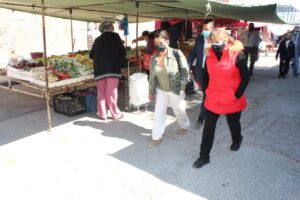 La directora de Comercio Municipal, Beatriz Eugenia Benavente Rodríguez, recorrió este martes la ruta 6 y 7 de los tianguis ubicados en la colonia Popular y Constituyentes, para vigilar el cumplimiento de las medidas contra el covid-19 en esos espacios.