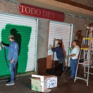 Como parte de las acciones que derivan de la integración del Consejo de Seguridad del Centro Histórico, del 03 de diciembre al 20 de enero de este año, la Unidad de Gestión realizó los siguientes trabajos: aplicación de pintura a 50 cortinas de establecimientos comerciales, retiro de grafiti en 370 metros cuadrados, fabricación de 30 tapas de registro e instalación de filtros de supervisión en puntos de acceso a la zona para apoyo en el control de la actividad comercial.