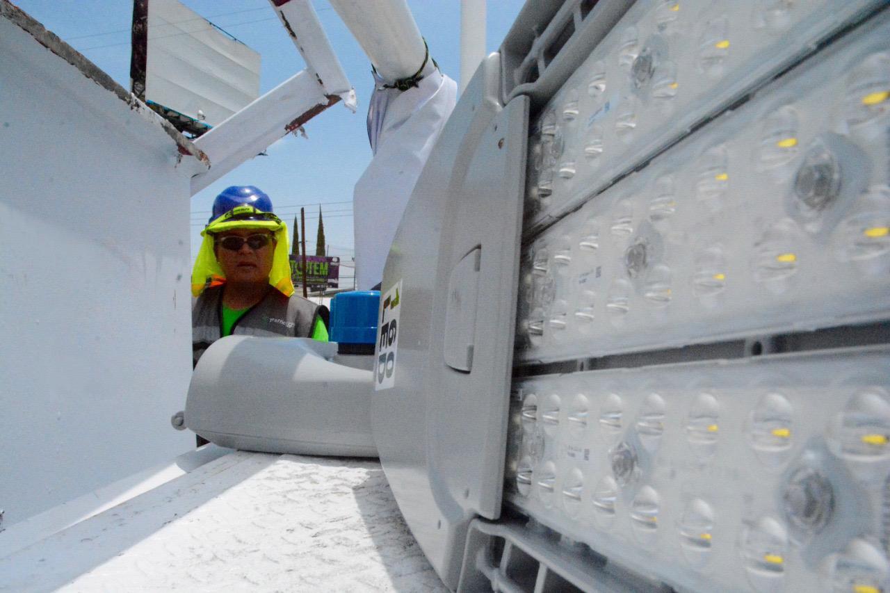 Asimismo, se realizaron trabajos de reposición de luminarias y reconexión de circuitos en la Colonia Progreso, en Bosque de Jacarandas, Colonia Los Álamos, Fraccionamiento Juan Pablo, Barrio de Tequisquiapan, Nuestra Señora de la Salud y en el Fraccionamiento Tangamanga.