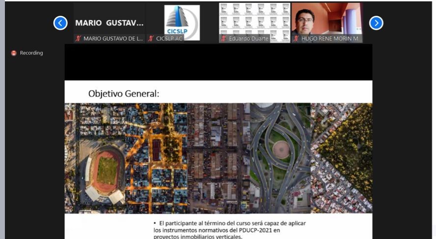 Para profesionalizar las funciones que desempeñan los Directores Responsables de Obra (DRO), y el personal municipal, la Dirección de Gestión Territorial y Catastro del Gobierno de la Capital dio a conocer que se impartió el curso en línea denominado “Programa de Desarrollo Urbano de Centro de Población SLP, énfasis en vivienda vertical”.